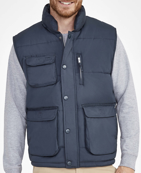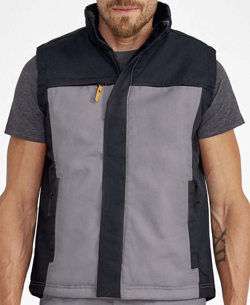 Colete de trabalho acolchoado com forro exterior, interior e enchimento.
