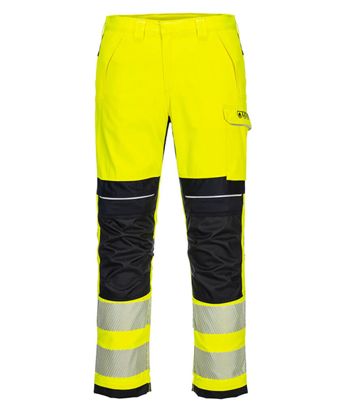 Colete de alta visibilidade com duas faixas reflectoras no peito e costas. Gola em bico e fecho de velcro ajustável.